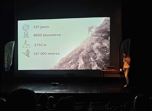 La ville de Belfort m’a également offert une belle récompense. En dehors de tout résultat en compétition ou en championnat, elle me déclara « sportif de l’année » avec comme cadeau de maillot de meilleur grimpeur signé par Tadej Pogacar. Avec en prime une invitation à présenter mon voyage et mener la dictée devant plus de 800 élèves à l’occasion d’un évènement du Tour de France. Ce fut intimidant mais très enrichissant, les enfants étaient captés et les questions très nombreuses. Et cette courte présentation m’ouvra la porte de nombreuses écoles pour venir dans les classes exposer plus en détail ma traversée. Les questions sont parfois surprenantes ou rigolote du genre « comment tu faisais caca » ou « les étoiles ça, ne te réveillait pas ? » J'avais tout de même adapté ma présentation en l'orientant plus 'rencontres animales et aventures' pour garder l'attention parfois itinérantes des plus jeunes. ​ Aussi la conclusion était toujours la même avec une photo de moi petit sur mon premier vélo en expliquant que j'avais eu toute la peine du monde à me lancer seul sans mes roulettes. Et cet enfant avec rien de spécial traversait les Alpes 30 ans plus tard, alors je leur rappelais de croire en leurs rêves. Oui, ça ne suffirait peut être pas, mais comme un voyage, le chemin serait probablement plus important que la destination.